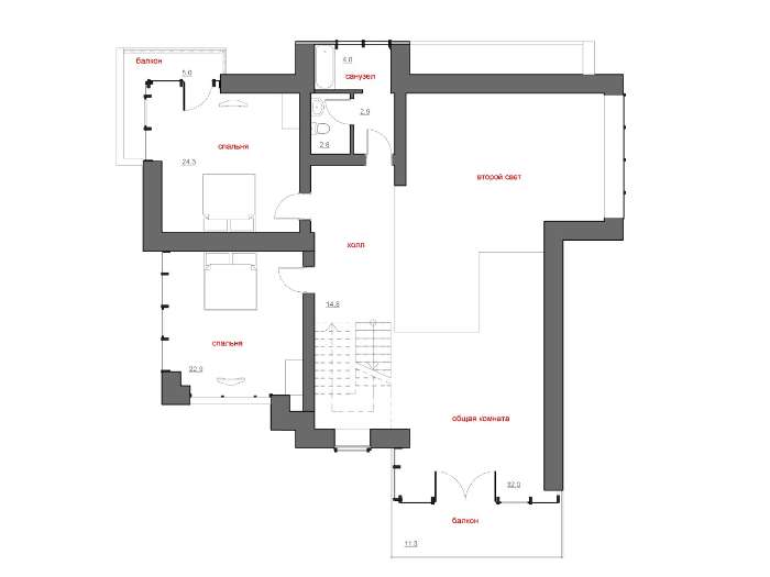 Проект содержит три раздела – Архитектурный, Конструктивный и Инженерный (Водоснабжение, Отопление, Вентиляция, Канализация, Электроснабжение) + Пояснительная записка